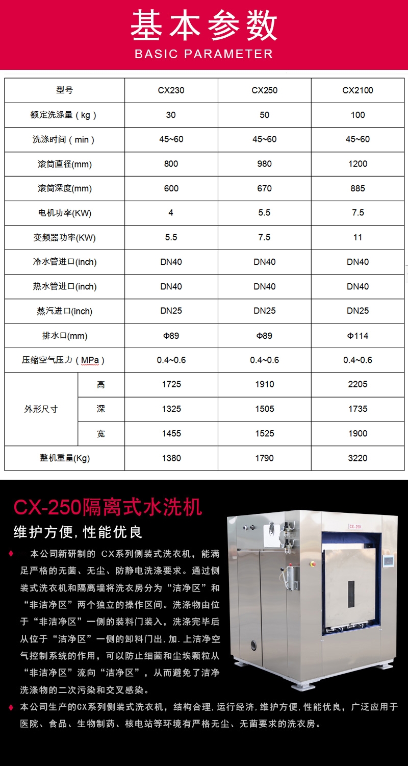 醫院洗衣房30公斤衛生隔墻式洗衣機洗脫機